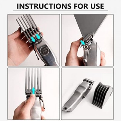 프리미엄 클리퍼 가드, 3인치, 2.75인치, 2.5인치, 2.25인치, 2인치, 1.75인치, 1.5인치, 1.25인치(#24, 22, 20, 18, 16, 14, 12, 10)의 8가지 절단 길이를 갖춘 클리퍼 빗 가이드 Wahl Clipp
