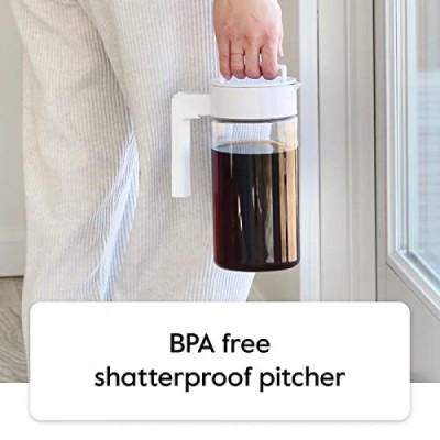 Takeya Patented Deluxe Cold Brew Iced Coffee Maker with White Lid Pitcher, 2 qt, White