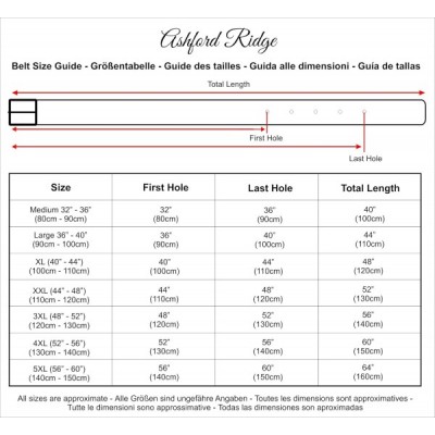 Ashford Ridge 38mm Beschichtetes Leder Gürtel - 81cm - 152cm taille Schwarz oder Braun 140CM (gesamtlänge 155cm) Schwarz