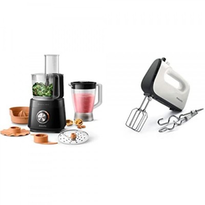 Philips Viva Collection HR7510/00 Food Processor (800 W, 29 Functions, 2L Filling Capacity) Black & HR3741/00 Hand Mixer (450 Watt, 5 Speeds Plus Turbo) White/Black