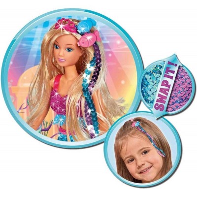 Simba 105733330 - Steffi Love Swap Mermaid, Spielpuppe als Meerjungfrau mit toller Paillettenschwanzflosse, Swap-Effekt, inkl. zwei Haarsträhnen, 29cm, ab 3 Jahre