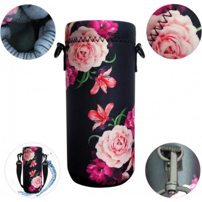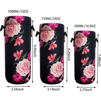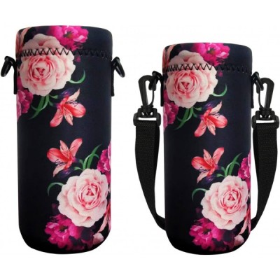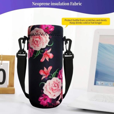 HAPLIVES 물병 토트 소녀 소년 성인을위한 어깨 끈이있는 1000ml/750ml/500ml 병용 절연 네오프렌 운반 가방 750ML/24oz Peony Blossom