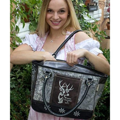 Domelo Tracht Women's Costume Bag Dirndl Bag Large Shopper Handbag Wrist Bag Vintage Women Bag Canvas Bag Traditional Oktoberfest, Black Grey, Traditional costumes