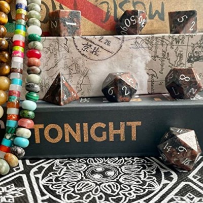Amatolo 수제 천연 보석 주사위 세트, 던전 앤 드래곤용 컬렉션 옥 주사위(Glaucophane 편암)