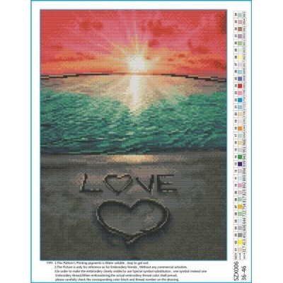 Awesocrafts Kreuzstich-Set, geprägt, Liebesschild am Strand, Sonnenuntergang Ozean, einfache Muster, Kreuzstich, Stickerei, Handarbeit, Zubehör (Strand)