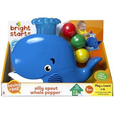 Bright Starts Silly Spout Whale Ball Popper 음악 활동 장난감, 빛과 소리, 3개의 공, 초기 개발, 유아 연령 6-12개월 Whale Popper Single