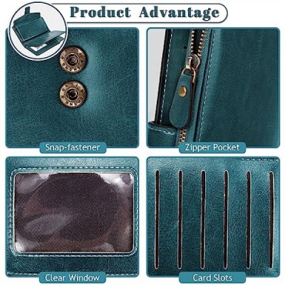 AOVNEA RFID 보호 및 손목 스트랩이 포함된 여성용 대용량 지갑, 여러 개의 카드 슬롯 및 기저귀 교환 공간이 있는 매끄럽고 부드러운 가죽 지갑, 블루