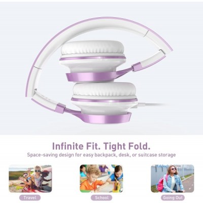 AILIHEN MS300 유선 헤드폰 접이식 스테레오 이어폰 유선 헤드셋 3.5mm Android 스마트폰 노트북 태블릿 PC 컴퓨터용(보라색)
