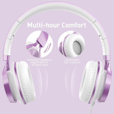 AILIHEN MS300 Kopfhörer Mit Kabel Faltbare Stereo On Ear Wired Headset 3,5mm für Android Smartphone Laptop Tablet PC Computer (Lila)