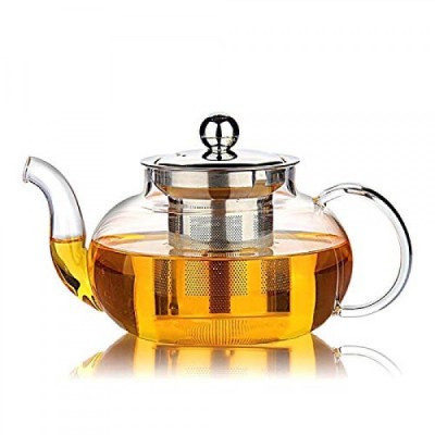 Hiware Glass Teapot with Stainless Steel Infuser & Lid, Borosilicate Glass Tea Pot Stovetop Safe, Blooming & Loose Leaf Teapots, 27 Oz