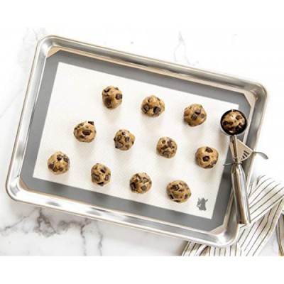 Nordic Ware Natural Aluminum Commercial Baker's Half Sheet, 2-Pack, Silver & Deluxe Silicone Nonstick Mat, 16 x 11 Inches, Storm Grey