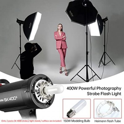 Godox 800Ws 2Packs SK400II 2.4G Studio Strobe Flash Light Kit,GN65 5600K Monolight Bowens Mount Flash for Studio Photography with XT-16 Transmitter,Softboxes,Light Stands,Reflectors,Umbrella,Carry Bag