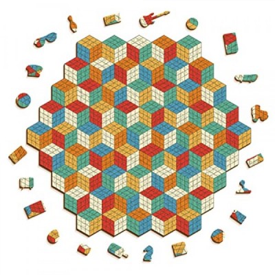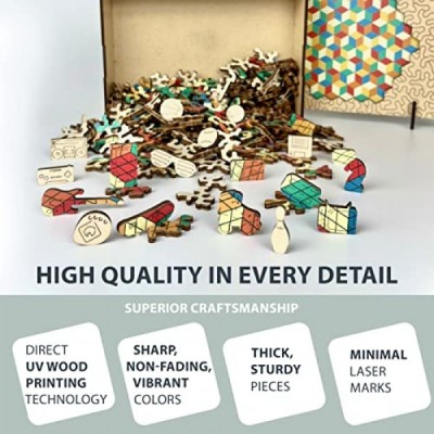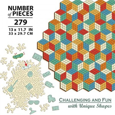 Cubes Wooden Jigsaw Puzzle - Retro Style Fun Challenge Game for Adults 13.1' x 11.7' - 279 Pieces Unique Shape by GEMTURT PUZZLE