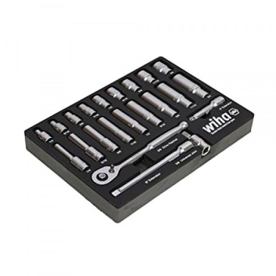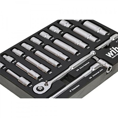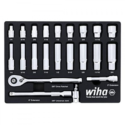 Wiha 33796 22 Piece 3/8 Drive Professional Standard and Deep Socket Tray Set - SAE