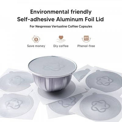 Reusable Vertuo Capsules Refillable Coffee Pods with Espresso Aluminum Foils for Nespresso Vertuo Coffee Machines GCA1 and De'Longhi ENV135S