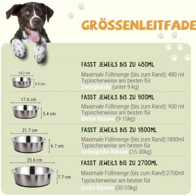 Peggy 11 Hundeschalen aus Edelstahl aus Metall| Rutschfestes Silikonkautschuk-Bodendesign| Ideales Futterwassernäpfe-Set für kleine, mittlere und große Hunde Für kleine Hunderassen Edelstahl