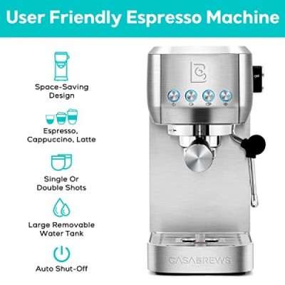 CASABREWS 에스프레소 머신 20바, 전문 에스프레소 메이커 카푸치노 머신(스팀 우유 거품기 포함), 스테인레스 스틸 에스프레소 커피 머신(49oz 탈착식 물 탱크 포함), 아빠