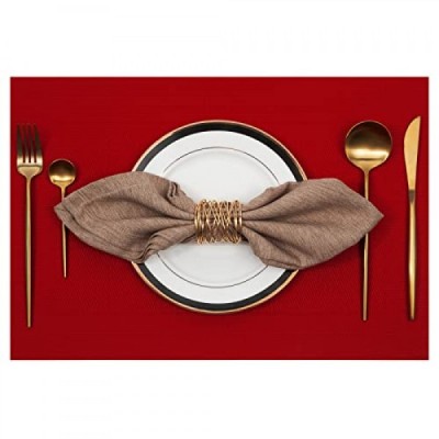 U'Artlines 플레이스매트, 6개 빨간색 Crossweave 짠 비닐 플레이스매트 세척 가능 테이블 매트 세트
