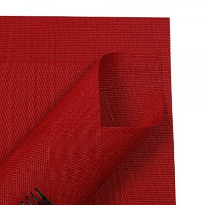 U'Artlines Placemat, 6pcs Red Crossweave Woven Vinyl Placemat Washable Table Mats Set