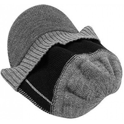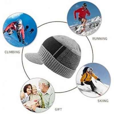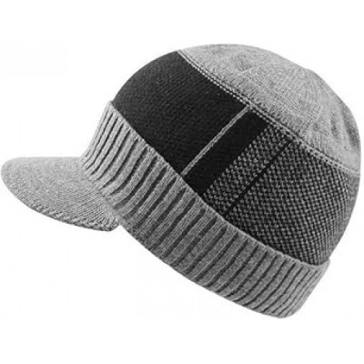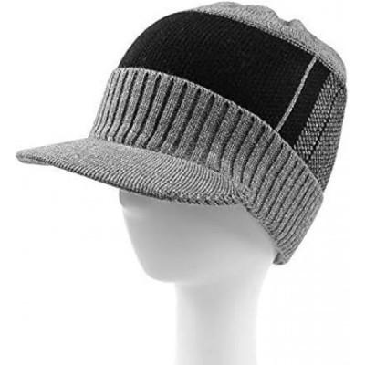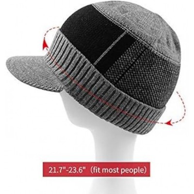 XIAOHAWANG Winter Men Hat Knit Cable Visor Beanie with Fleece Lining Patchwork Stripe Newsboy Cap with Brim for Outdoor Sport