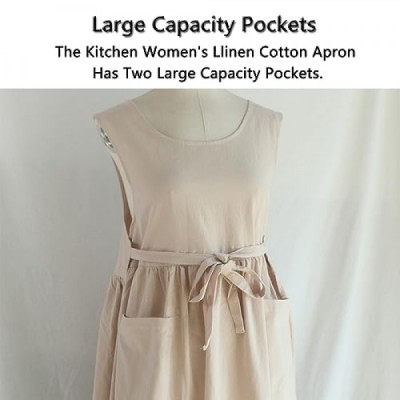 USCHAILIQIANG Apron for Women with Pockets Plus Size, Extra Size Adjustable Chef Garden Kitchen Apron Cotton Linen Work Apron
