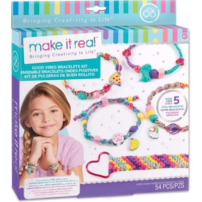 Make It Real Good Vibes 우정 팔찌 팔찌 구슬, 매력 및 실로 키트 만들기 - 소녀 보석 - 어린이를 위한 예술 및 공예