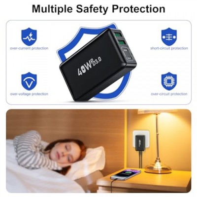 - 【4 포트 USB C+USB A 전원 어댑터】: 40W USB C 충전기는 4포트(듀얼 USB-C 포트 및 듀얼 USB-A 포트)로 설계되어 최대 4개의 장치를 동시에 충전할 수 있습니다. 휴대폰 충전 가능 , 태블릿 및 헤드폰을 동시에 사용하여 대기 시간을 최소화합니다. 또한 4개의 벽면 콘센트 포트를 차지하는 대신 공간을 크게 절약할 수 있습니다. 원래 USB 충전기를 가장 잘 대체할 수 있습니다.