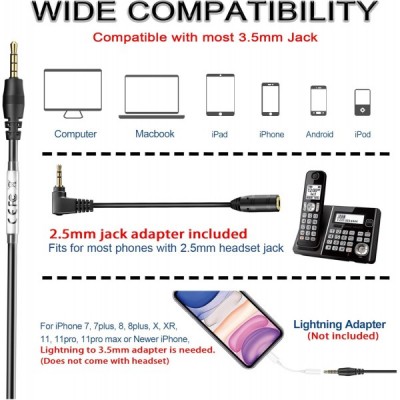 노이즈 캔슬링 마이크가 장착된 Wantek 휴대폰 헤드셋 모노, iPhone용 유선 컴퓨터 헤드폰 Samsung Huawei HTC LG ZTE BlackBerry 스마트폰 및 노트북 PC Mac 태블릿(3.5mm 잭 포함)
