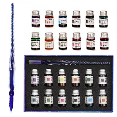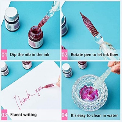 AOKUY 유리 펜 세트 서예 딥 펜, 12 개의 다채로운 잉크, 예술, 쓰기, 서명, 장식, 선물용 서예 세트