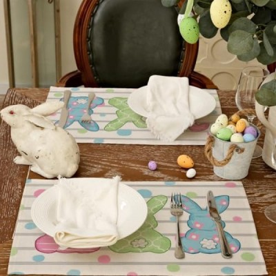 ARKENY 부활절 Placemats 12x18 인치 6개 세트, 토끼 토끼 점 휴일 농가 삼베 Srtipe 실내 테이블 매트 장식 홈 AP243-6