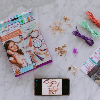 Make It Real – Gold Link Suede Bracelets. DIY Suede Bracelet & Choker Making Kit for Girls. Arts and Crafts Kit to Design and Create Unique Tween Jewelry with Faux Suede, Beads, Gold Pieces & Charms