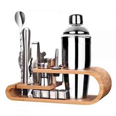 Mixology Bartender Kit, SuperCook Cocktail Shaker Set, Bar Accessories for The Home Bar Set, 25 OZ Martini Shaker, Drink shakers Cocktail with Bamboo Stand, Alcohol Mixer Shaker Set Gifts for him