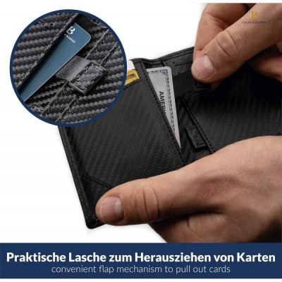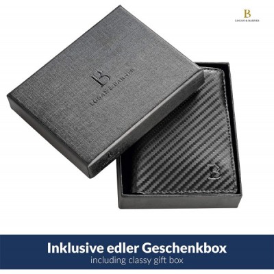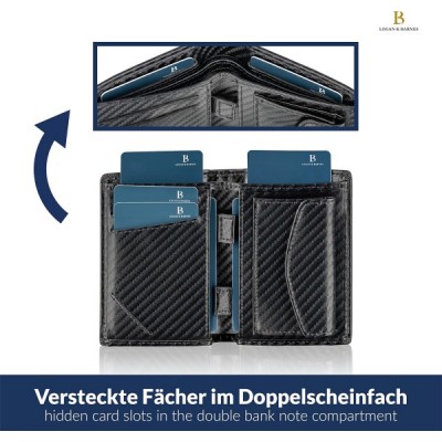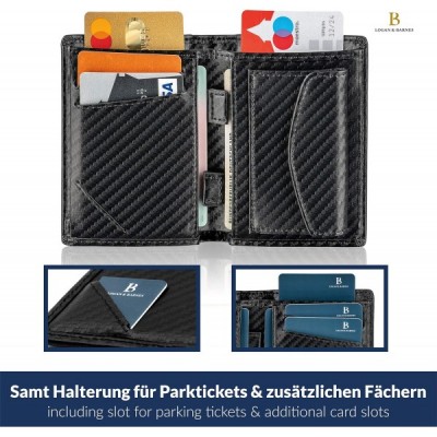 TÜV 테스트를 거친 남성용 미니 지갑 RFID 보호 기능 - 작은 지갑 남성용 세로 형식 - 얇은 지갑 남성용 LOGAN & BARNES - 모델 취리히(가죽 - 카본, 동전 수납 공간 포함) 가죽