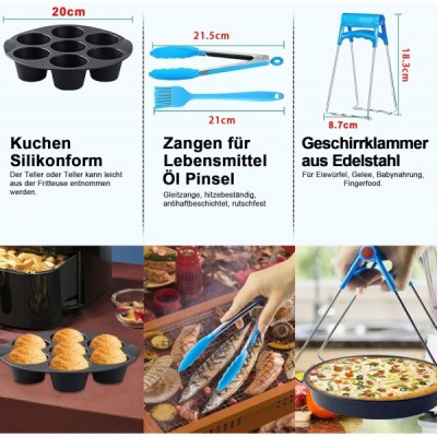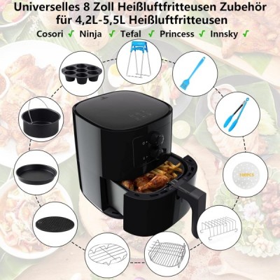 YINGRACE 20cm Heißluftfritteuse Zubehör, 12-teiliges Airfryer XL Zubehör Set Passend für COSORI Ninja Princess Tefal 4,2L 4,5L 4,7L 5,2L 5,5L, Philips 6,2L, BPA-frei, Spülmaschinenfest, Antihaf, 8Zoll