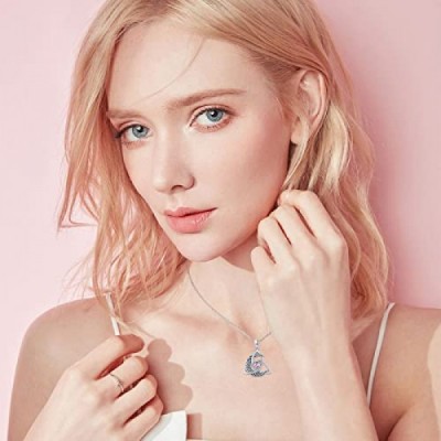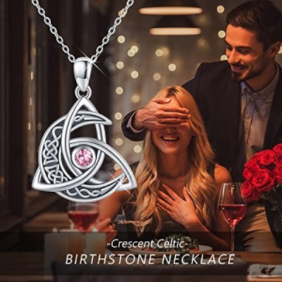 Midir&Etain Celtic Moon Necklace 925 Sterling Silver Birthstone Celtic Knot Pendant Necklace Crescent Moon Celtic Jewellery Gifts for Women Girls Girlfriend Mother Daughter