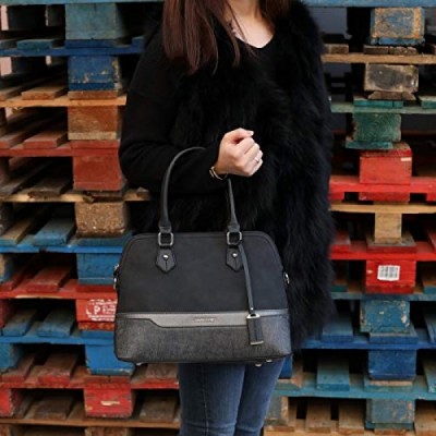 David Jones Elegant Women’s Handbag. Bugatti Bowling Style Tote Handbag, Top Handle, PU Leather, Multi-Colour Striped Shoulder Bag Synthetic, Beige Grey