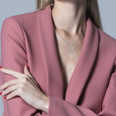 MESASTOM Hearts Pendant Women Necklace 925 Sterling Silver with Engraved Personalised Gift for Mum