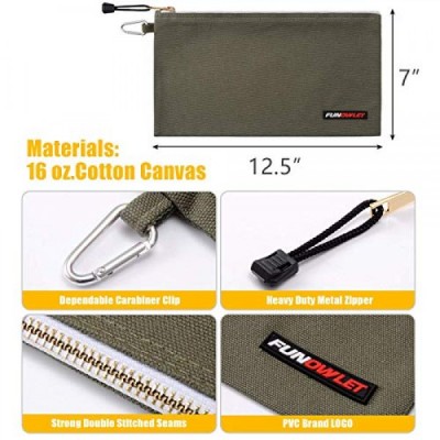 FunOwlet Utility Canvas Zipper Tool Bag - Heavy Duty Tools Pouch with Carabiner, Multi-Purpose Storage Organizer Clip on Tote Bags in Olive, Orange, Blue, Yellow, 4 Pack