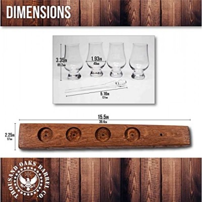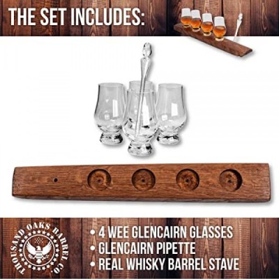 The Wee Glencairn 위스키 비행 지팡이 - 재생 오크통 지팡이가 포함된 크리스탈 버번 유리 키트, 미니 Glencairn 위스키 유리 4개 세트 및 위스키 유리 피펫 점적기