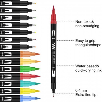 Hhhouu 100 색 브러시 마커 브러시 펜 저널 액세서리 펜, 마커 펜 성인을위한 양면 색칠하기 책bullet journal handlettering hho-100B