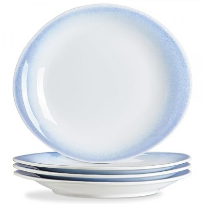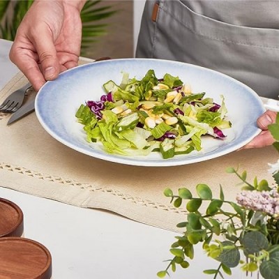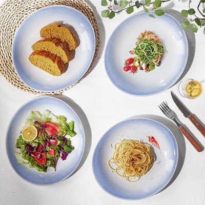 ONEMORE 10 inch Dinner Plates, Ceramic Salad Plates Modern Curve Oval Plate Set of 4 Large Serving Dishes for Appetizer Desserts Pasta Pizza | Scratch Resistant, Dishwasher, Microwave Safe - Blue