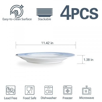 ONEMORE 10인치 디너 접시, 세라믹 샐러드 접시 전채 디저트 파스타 피자용 대형 서빙 접시 4개로 구성된 현대적인 곡선 타원형 접시 세트 | 긁힘 방지, 식기세척기, 전자