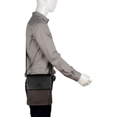 Hidesign Aiden Genuine Leather and Canvas Mini Crossbody Men/Women Messenger Bag/Travel Bag / 10.5" iPad Bag, 10.5", Crossbody Bag Charcoal