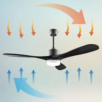 Cecotec EnergySIlence Aero 5200 Ceiling Fan Black Design 40 W, 52 Inches with DC Motor, LED Lighting and Remote Control (Wood Finish, Stone Pro)
