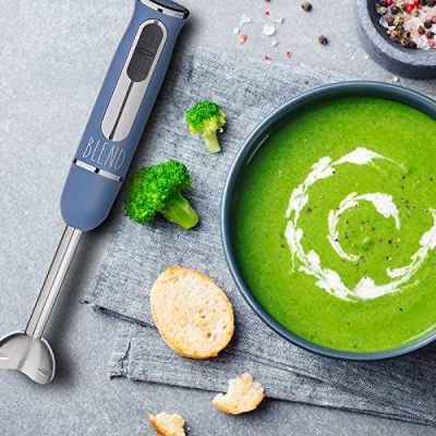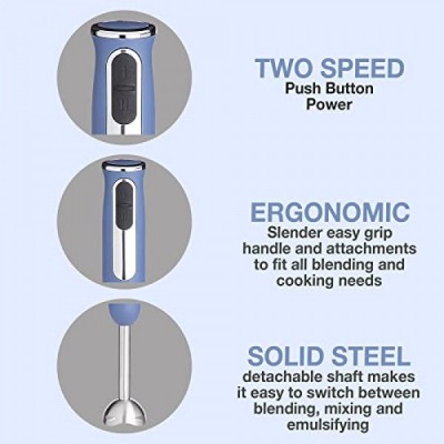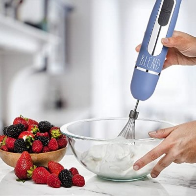 Rae Dunn 이머전 핸드 블렌더 - 달걀 거품기 및 우유 거품기 부착 장치가 포함된 핸드헬드 이머전 블렌더, 2단 블렌더, 500와트, 스테인레스 스틸 블레이드(네이비)
