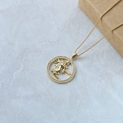 PAVELS 보석 상자와 진품 인증서, 실버, 큐빅을 포함한 Eclipse 컬렉션의 AAA 품질의 우아한 여성용 조디악 표지판 목걸이 버진 18캐럿 골드 도금 빛나는 지르코니아