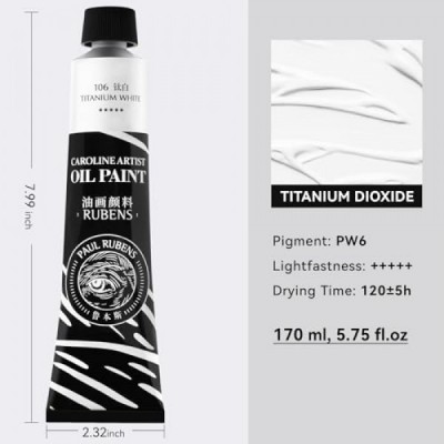 Paul Rubens 티타늄 화이트 오일 페인트, 채도가 높은 170ml 오일 색상, 대형 튜브, 예술가, 학생, 초보자를 위한 크리미한 질감과 일관성을 갖춘 아티스트 오일 페인트 미