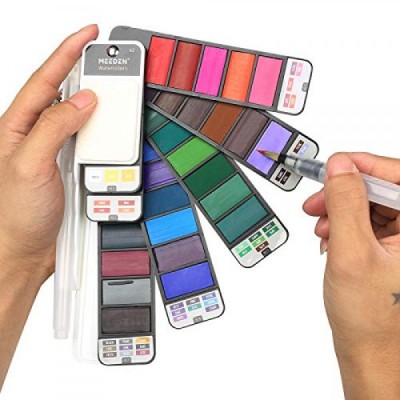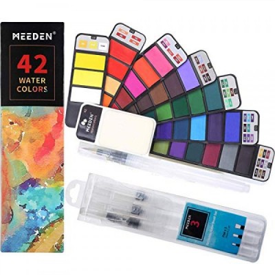 MEEDEN 여행용 수채화 물감 세트: 휴대용 42가지 다양한 수채화 물감 페인트 키트(브러시 4개 포함)