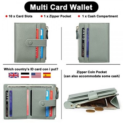 FALAN MULE 여성용 RFID 보호 지갑이 포함된 여성용 정품 가죽 지갑 소형 및 짧은 형식, Ad-grey-green