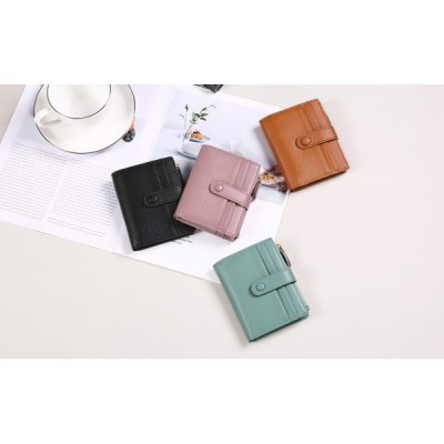 FALAN MULE Women's Genuine Leather Wallet with RFID Protection Purse for Women Purse Small and Short Format, Ad-grey-green